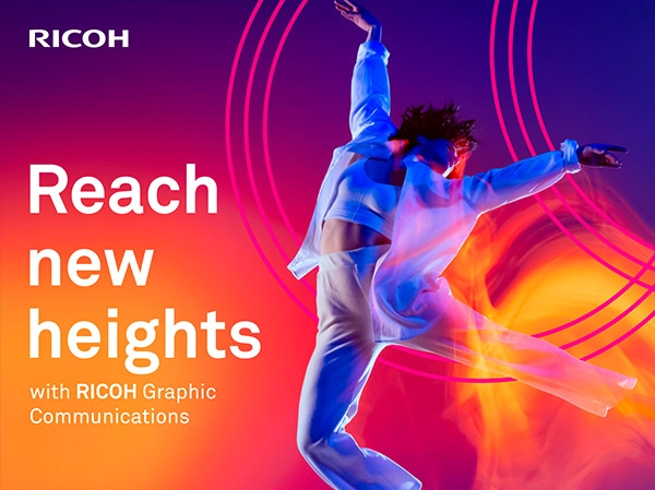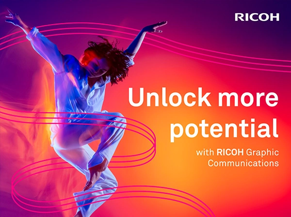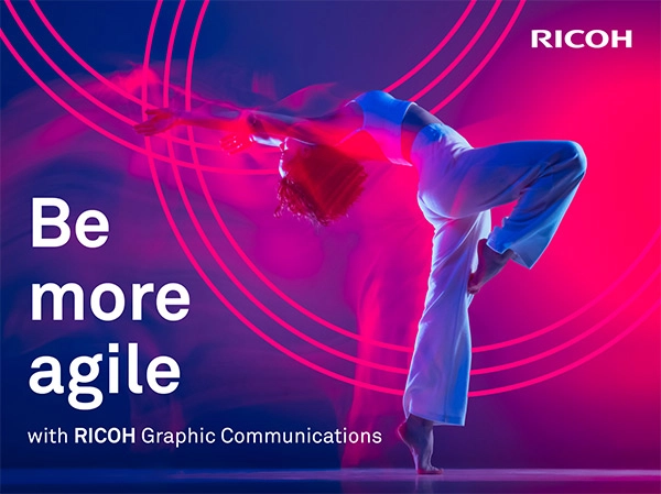 Square Root Creative propelled RICOH Graphic Communications forward with a groundbreaking creative campaign that transcended industry norms. Moving away from a traditional hardware-focused approach, we embraced Ricoh's “imagine. change.” ethos to arrive at a fresh solution infused with energy and movement. Our multiplatform, B2B campaign (digital, print, demand generation, showroom and tradeshow graphics) featured human forms pushing boundaries, a physical embodiment of the speed, efficiency, and fluidity that RICOH Graphic Communications delivers. Working from a newly launched style guide, we crafted a vibrant, modern campaign that featured a fresh color palette, bold design and graphic elements, benefit-driven headlines, and an overall feel that not only showcased Ricoh's evolution but also reaffirmed the enduring relevance of print.